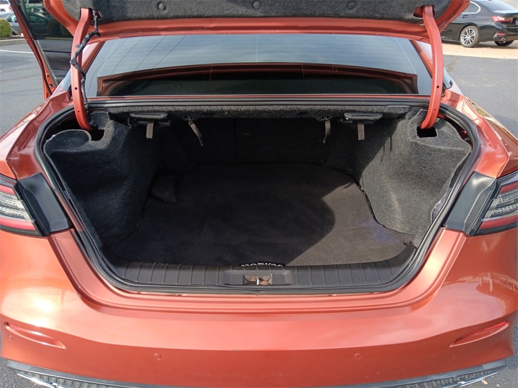 - The 2021 Nissan Maxima Platinum in Sunset Drift Chromaflair is a striking full-size sedan with a vibrant, shifting orange-to-red exterior that gleams with dynamic flair under the light. Powered by a potent 3.5L V6 DOHC 24V engine, it delivers 300 horsepower and 261 lb-ft of torque, paired with a smooth CVT with Xtronic and front-wheel drive for spirited yet efficient performance (around 20/30 MPG city/highway). The Platinum trim exudes luxury with 19-inch diamond-cut aluminum wheels, a panoramic moonroof, and chrome accents. Inside, the refined cabin features premium Ascot leather seats with diamond-quilted inserts, heated and cooled front seats, a heated steering wheel, and ambient lighting. The 8-inch touchscreen infotainment system supports NissanConnect, Apple CarPlay, Android Auto, and a Bose 11-speaker audio system for immersive sound. Convenience shines with remote start, dual-zone climate control, and a power-adjustable drivers seat with memory settings. Safety is top-notch with Nissan Safety Shield 360, including blind-spot warning, rear cross-traffic alert, lane departure warning, and intelligent cruise control. With its bold style, powerful drive, and upscale comfort, the Maxima Platinum is perfect for those craving a blend of sporty performance and premium sophistication on daily drives or long journeys.